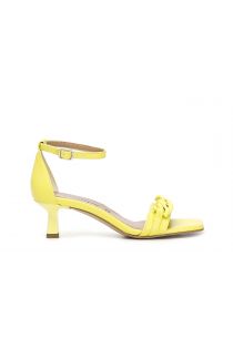 Sandalias con punta cuadrada y tacón 50, accesorio de cadena, forro y plantilla de piel.