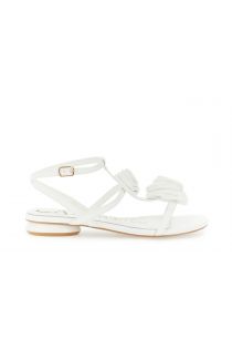 sandalias con tiras en el tobillo efecto piel y apliques de flores off white
