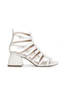 Sandalias tipo jaula en napa tejida con tiras y hebillas. la plantilla es de piel. zapato que se puede usar todo el día gracias al tacón de base ancha de 6.3 cm de altura y la cómoda base de apoyo.