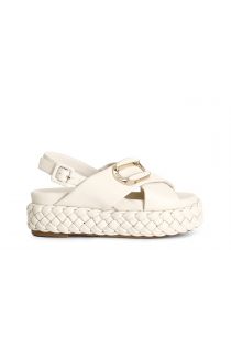 sandalias cruzadas con fondo trenzado y complemento. butter