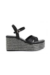 Sandalias con parte superior de napa cruzada y correa en el tobillo. cuña con bandas de pedrería. la cómoda plantilla acolchada de piel auténtica hace que el zapato resulte confortable incluso tras varias horas de uso. el tacón mide 70 mm de alto y la plataforma 35 mm.