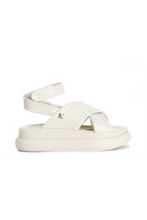 Sandalias de piel con cruceta y tira al tobillo. el forro y la plantilla son de piel. la cuña tiene 4.5 cm de altura. calzado perfecto para cada situación. ideal para tus aventuras en la playa pero también para un paseo por la ciudad. combinación perfecta entre elegancia y practicidad.