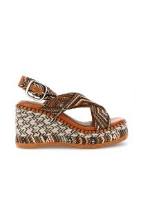 Sandalias cruzadas de tela con cuña envolvente de 9.5 cm. tira trenzada y plantilla cómoda. calzado ideal para el verano con un toque boho-chic y máxima estabilidad para un look fresco y moderno.