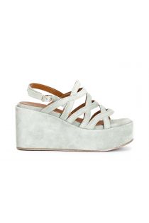 Sandalias de cuña en piel serraje con cruces que dan sujeción estable al pie. la plantilla es de piel. la cuña tiene 9.5 cm de alto. un calzado que te hará sentir cómodo cada día. sin renunciar a tu estilo.