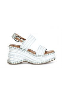 sandalias cuña doble banda en tejido white/light blue
