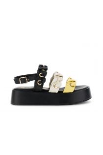sandalias de 3 tiras en piel napa con ojales y enhebrado multi yellow