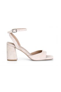 Sandalias de ante. la plantilla es de piel. zapato con forma ligeramente cuadrada. tacón grueso de 8.3 cm.