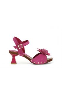 sandalias de ante con flor 3d y tira en el tobillo hot pink