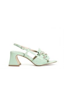 Sandalias de ante y napa con flecos adornados con una cadena joya. un zapato que puede llevarse durante todo el día gracias a su tacón de 55 mm de altura y su cómoda base.