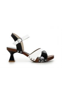 sandalias de charol bicolor con tacón de reloj de arena white/black