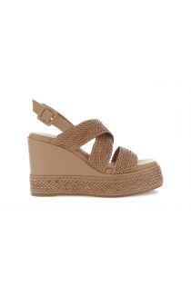 sandalias de cuña con tacón cruzado en efecto piel sintética trenzada tan