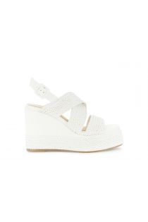 sandalias de cuña con tacón cruzado en efecto piel sintética trenzada white