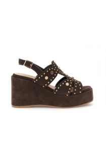 sandalias de cuña de ante con tachuelas y cabujones dark brown