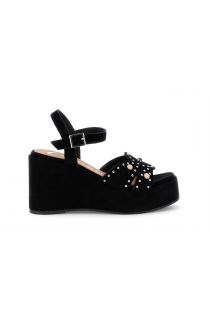 sandalias de cuña de ante gilda con tachuelas y cabujones black