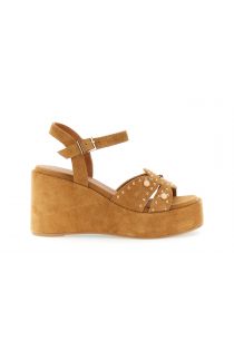 sandalias de cuña de ante gilda con tachuelas y cabujones tan