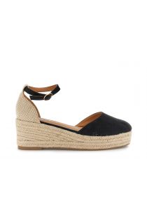 Sandalias de cuña de microfibra de 6.3 cm con puntera cerrada y tira en el tobillo. plataforma de 2.9 cm. suela de cuerda trenzada detalle texturizado en la parte trasera y una silueta cómoda y femenina las hacen perfectas tanto para looks de verano casuales como elegantes.