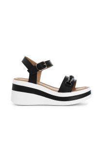 Sandalias de napa con accesorio de pedrería. cuña cómoda y ancha con plantilla acolchada envuelta en napa. correa con hebilla ajustable en el tobillo.