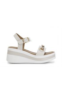 Sandalias de napa con accesorio de pedrería. cuña cómoda y ancha con plantilla acolchada envuelta en napa. correa con hebilla ajustable en el tobillo.