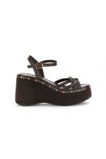 sandalias de cuña de piel gilda dark brown