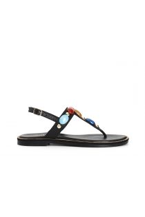 sandalias de dedo de piel con piedras black