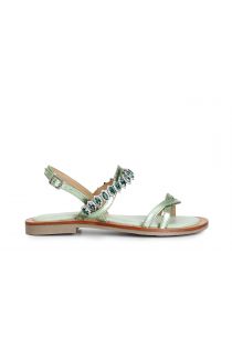 sandalias de doble banda en piel laminada con accesorio de strass mint
