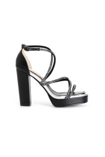 Sandalias con pedrería cerradas detrás y tira en el tobillo y plataforma. tacón h. 115 mm