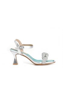 Sandalias de doble nudo con pedrería y tacón h. 70 mm