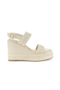 sandalias de dos tiras con cuña en efecto piel sintética trenzada beige