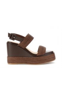 sandalias de dos tiras con cuña en efecto piel sintética trenzada dark brown