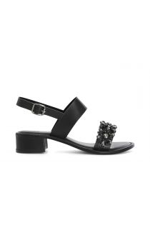 sandalias de dos tiras de piel con pedrería black