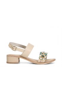 Sandalias de dos tiras de piel con pedrería tacón h. 35 mm.