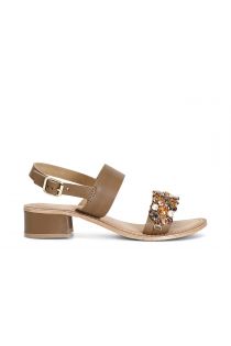 Sandalias de dos tiras de piel con pedrería tacón h. 35 mm.