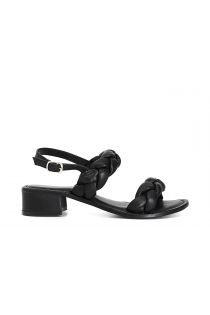 Sandalias de dos bandas cruzadas de piel en el tacón h. 35 mm.