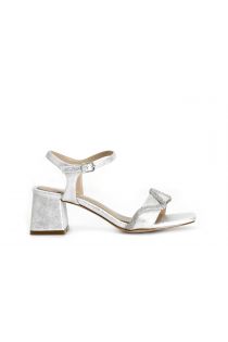 sandalias de efecto laminado con detalle de pedrería en la parte delantera silver