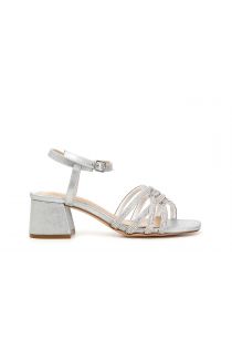 Sandalias de jaula de micropedrería en tacón medio.