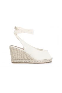 Sandalias de cuña y plataforma con cordones tipo esclava de lona.