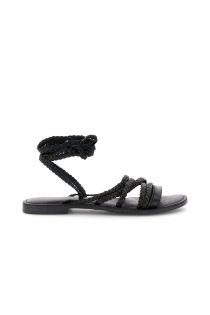 sandalias de piel con bordado de trenza y cierre de esclava black