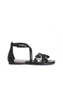 Sandalias bajas de piel cerradas por detrás y con doble tira que se ata al tobillo. decoración frontal bicolor que recuerda un entrelazado de hojas.