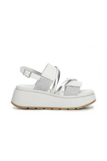sandalias de piel con cuña de dos colores white/silver