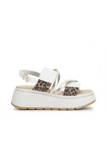 sandalias de piel con cuña de dos colores white/spotted