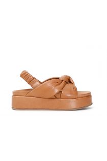 Sandalias de piel con elástico y cuña baja con banda anudada