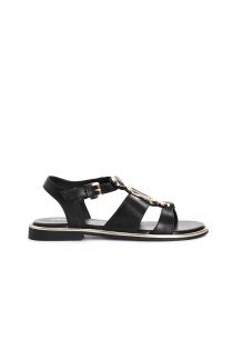 sandalias de piel con hebilla y triple complemento. black