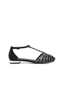Sandalias de jaula en "t" de piel con refuerzo trasero y pedrería mignon. correa en el tobillo.
