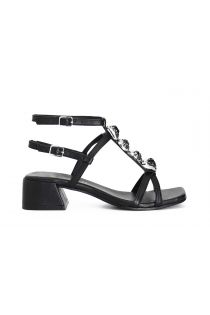 Sandalias de piel con pedrería y motivo "t". doble correa. el forro y la plantilla son de piel. forma cuadrada. el tacón es de 4.5 cm.