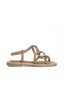 sandalias de piel de ante con accesorio joya. taupe