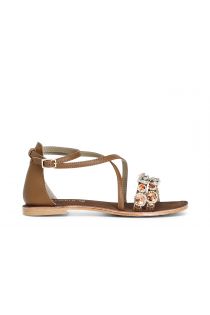 Sandalias joya cruzadas de piel cerradas por detrás con doble tira.
