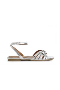 sandalias de piel metalizada con lazo en el tobillo silver