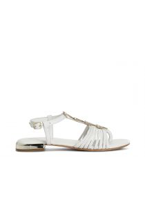 sandalias de piel mignon con accesorio triángulo de pedrería white