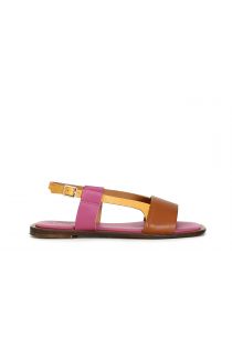 Sandalias de piel multicolor con tira alrededor del talón. tacón bajo y sabor étnico.
