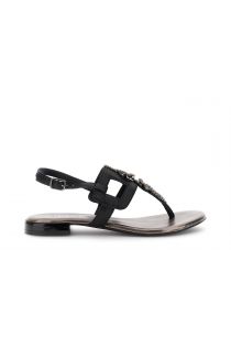 Sandalias planas de piel con diseño tipo chancla y tira ajustable al tobillo. líneas atrevidas detalle de joya en la parte delantera y cómoda plantilla de piel. tacón de 1.6 cm. perfectas para añadir un toque atrevido a tus looks de diario.
